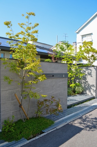 高低差を活かして緑量豊かなファサード|吹田市